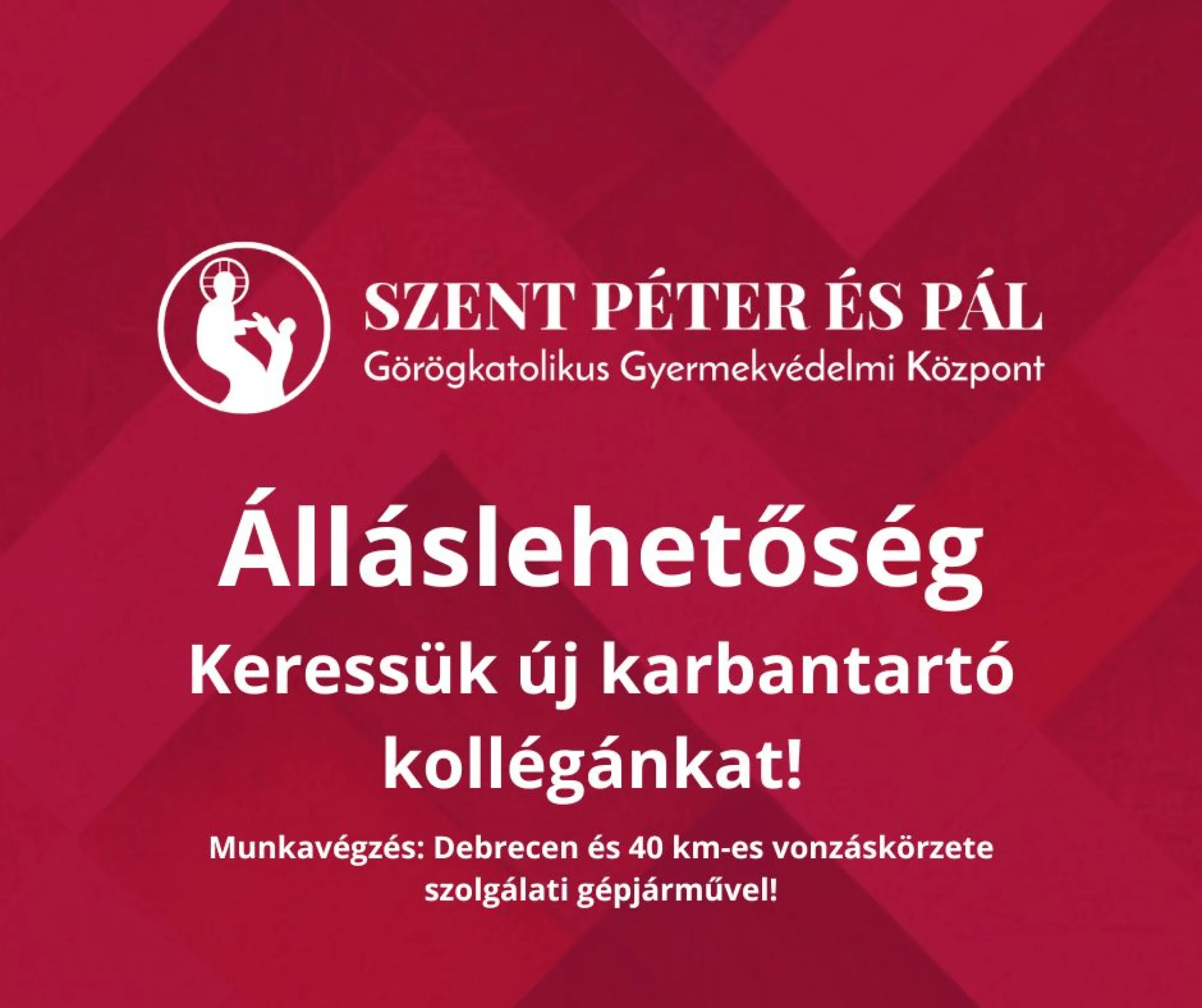 Keressük új karbantartó kollégánkat a Szent Péter és Pál Görögkatolikus Gyermekvédelmi Központ csapatába!