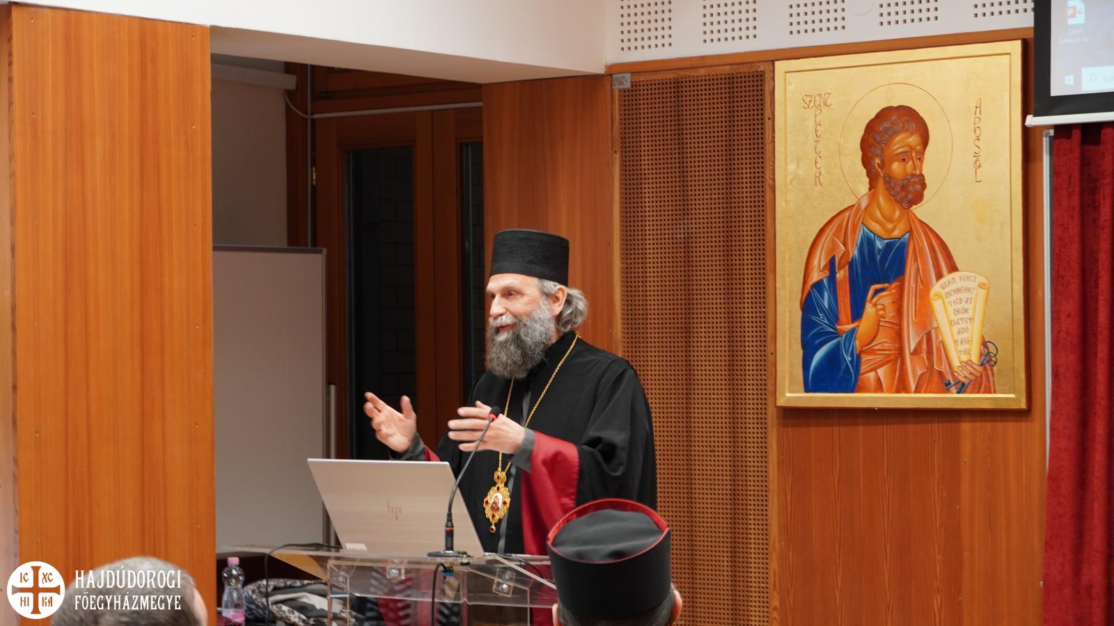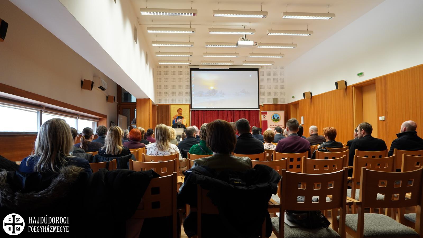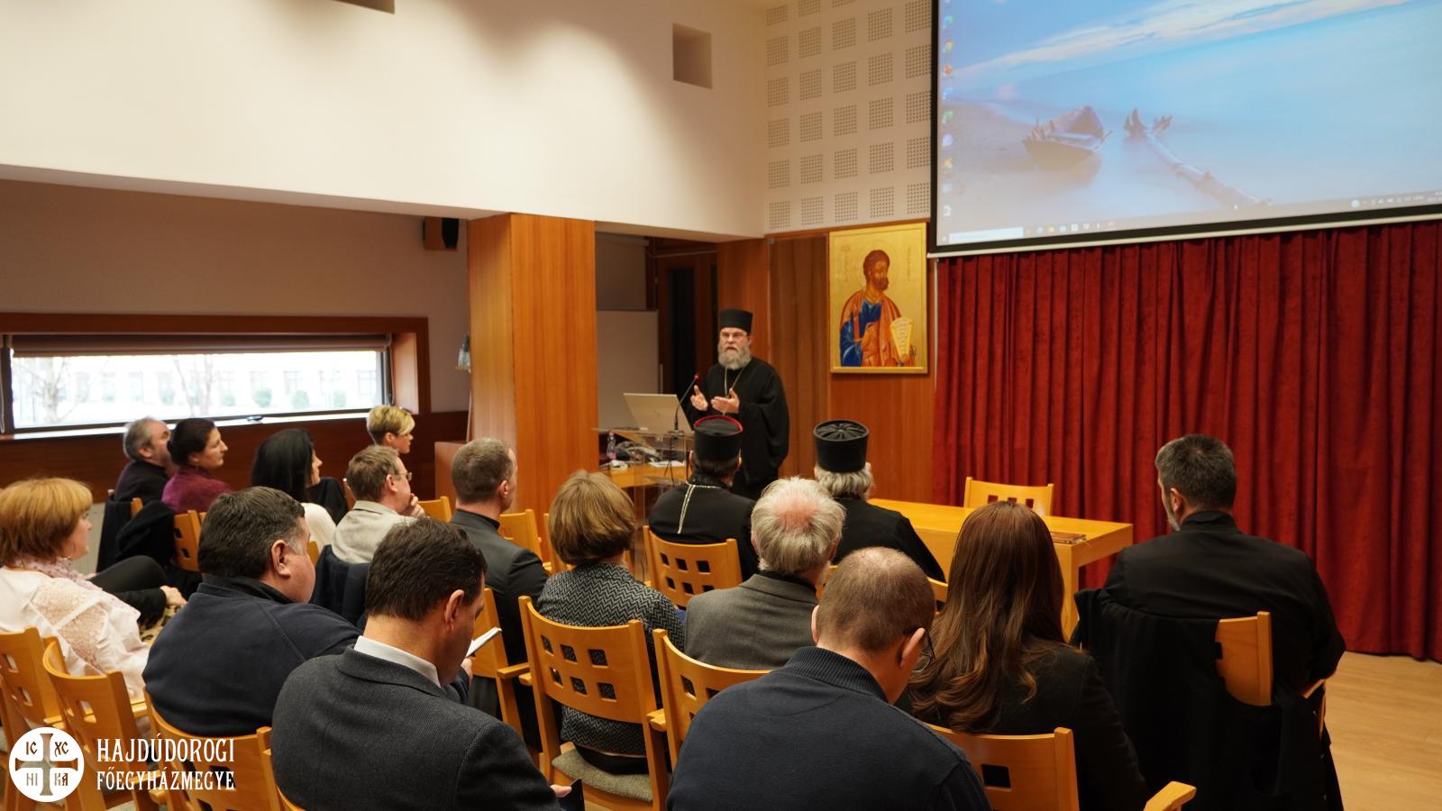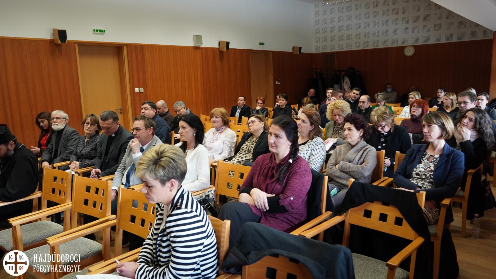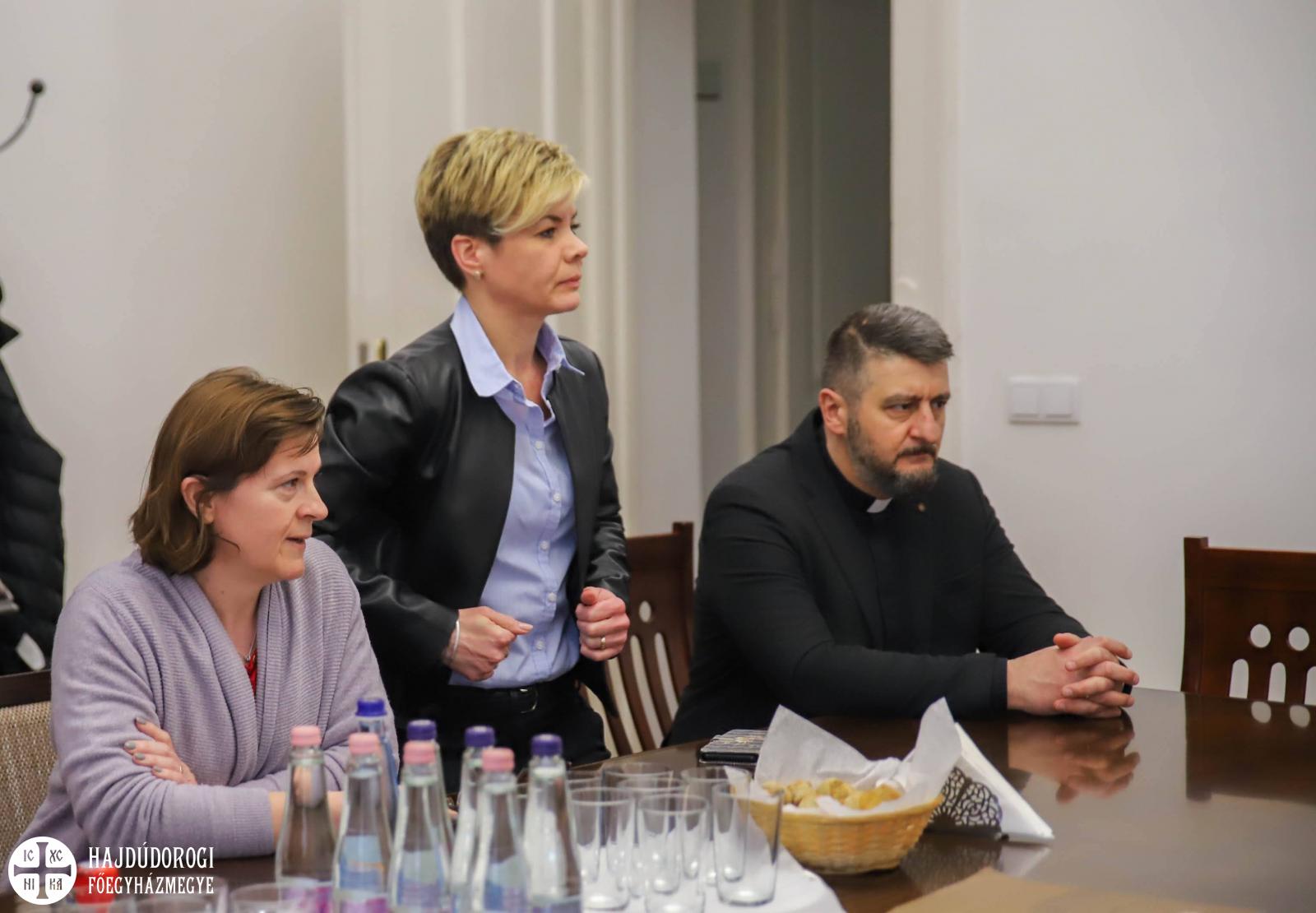 A püspök atyák bevezetője után a Hajdúdorogi Főegyházmegye gyermekvédelmi rendszerét dr. Tóthné dr. Tőkés Margaréta, a Gyermekvédelmi Fenntartói Iroda vezetője mutatta be. A főegyházmegye Hajdú-Bihar, részben Jász-Nagykun-Szolnok, és Fejér vármegyékben fejti ki tevékenységét. 2021 óta, a Szent István Görögkatolikus Gyermekvédelmi Központ alapításával a Dunántúlon is megkezdte gyermekvédelmi tevékenységét a görögkatolikus egyház. A gyermekvédelmi rendszer tanodaszolgáltatással is bővült, mely iskolai felzárkóztatást, szabadidő hasznos eltöltését biztosítja a gyermekek számára. A Székesfehérvár központú Szent István Görögkatolikus Gyermekvédelmi Központ, a hajdúnánási Szent Anna Görögkatolikus Gyermekvédelmi Központ és a Debrecen központú Szent Péter és Pál Görögkatolikus Gyermekvédelmi Központ 27 lakásotthonában és nevelőszülői hálózatában 1300-nál is több gyermekről gondoskodnak, 232 munkavállaló és 326 nevelőszülő segítségével.